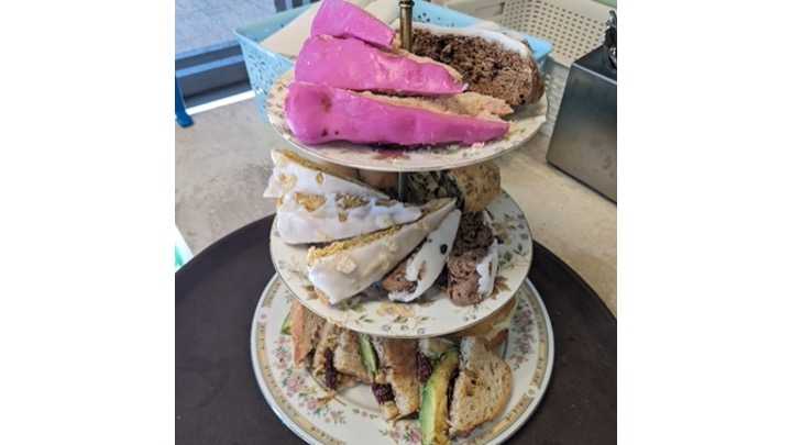 Make your tea party as big or a little as you want with our A La Carte Tea Party. Select items from our cafe menu and a pot of tea to create your own tea party. We'll cut the items into individual portions and serve them on our tea tray. A great way to add a little something special to your day.